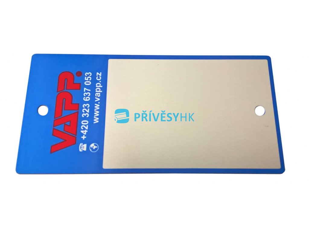 - Hliníkový výrobní štítek VAPP pro přívěsy vyráběné od r. 2012 do současnosti.