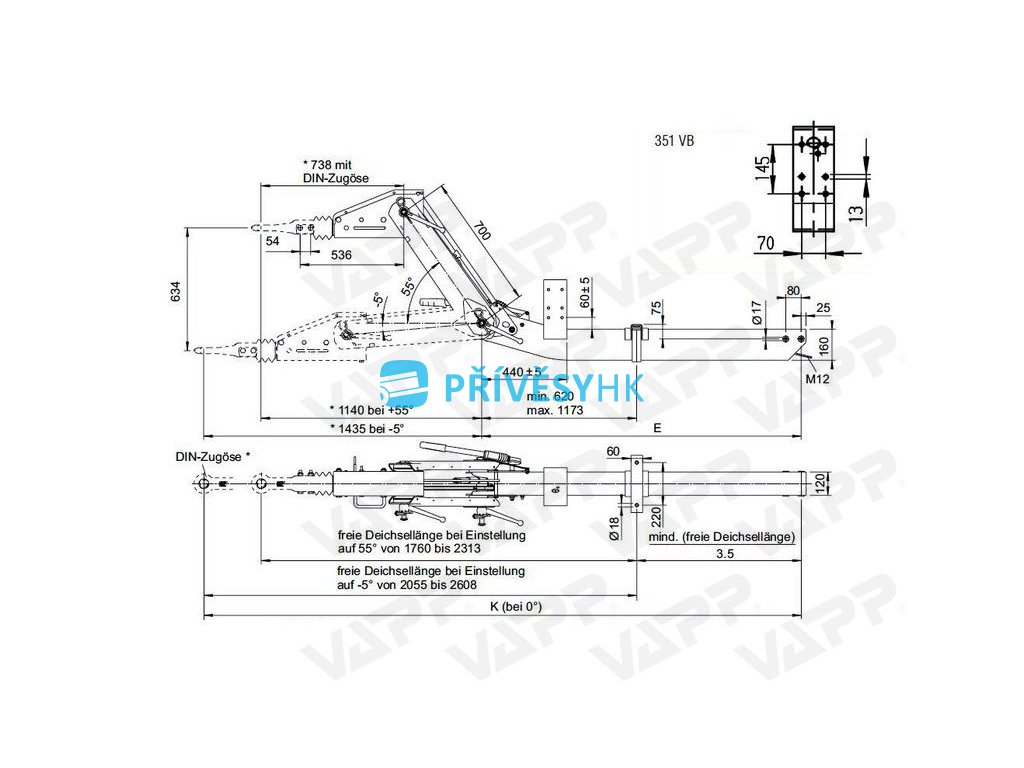 Výškově stavitelná oj AL-KO Optima 351 VB, 2500-3500kg, E=1410 mm, pro kol. jed. 2361