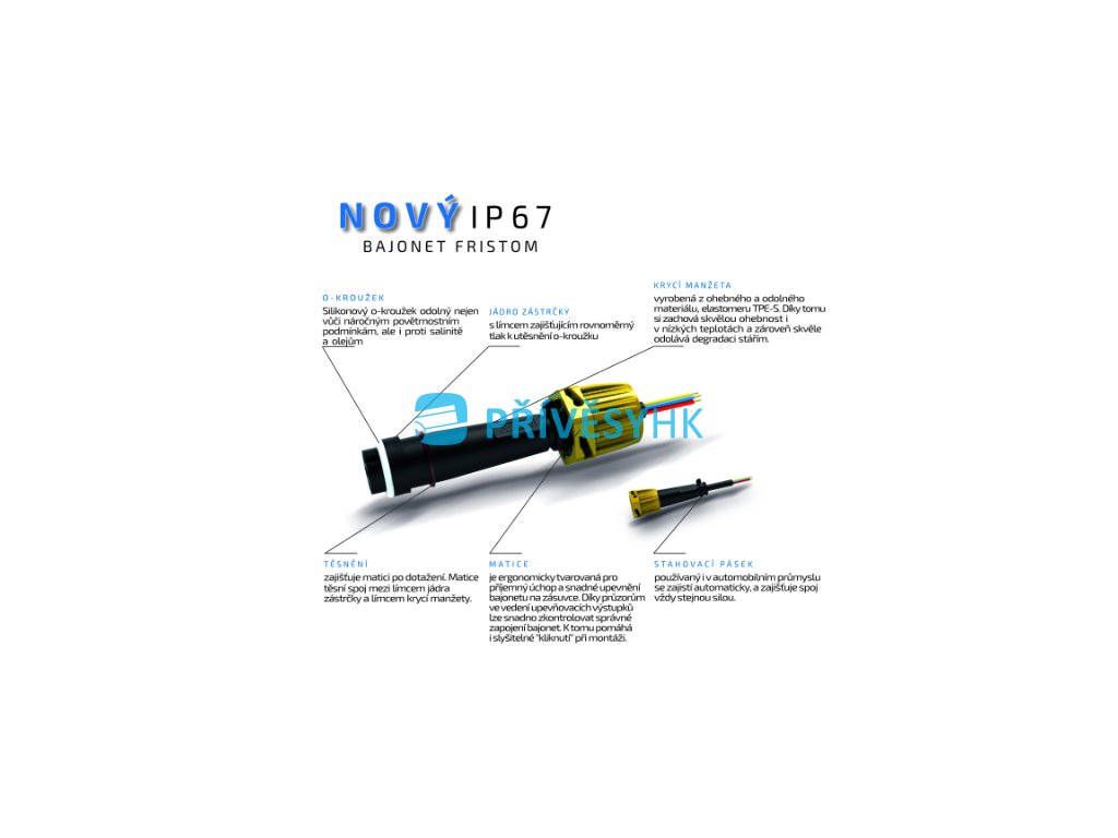 Zástrčka - bajonet Fristom IP67 5-pólový žlutý, 1 nebo 2 vývody