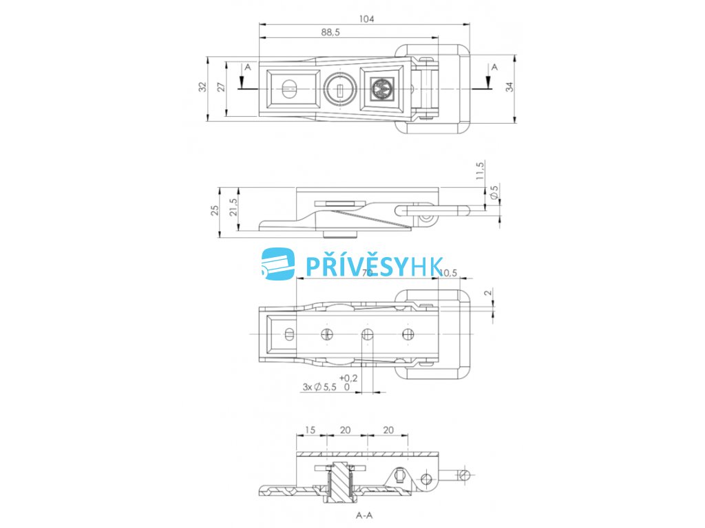 Závěr bočnic - přezka BVS 60-1 (bez protikusu, se zámkem), 2ks v balení